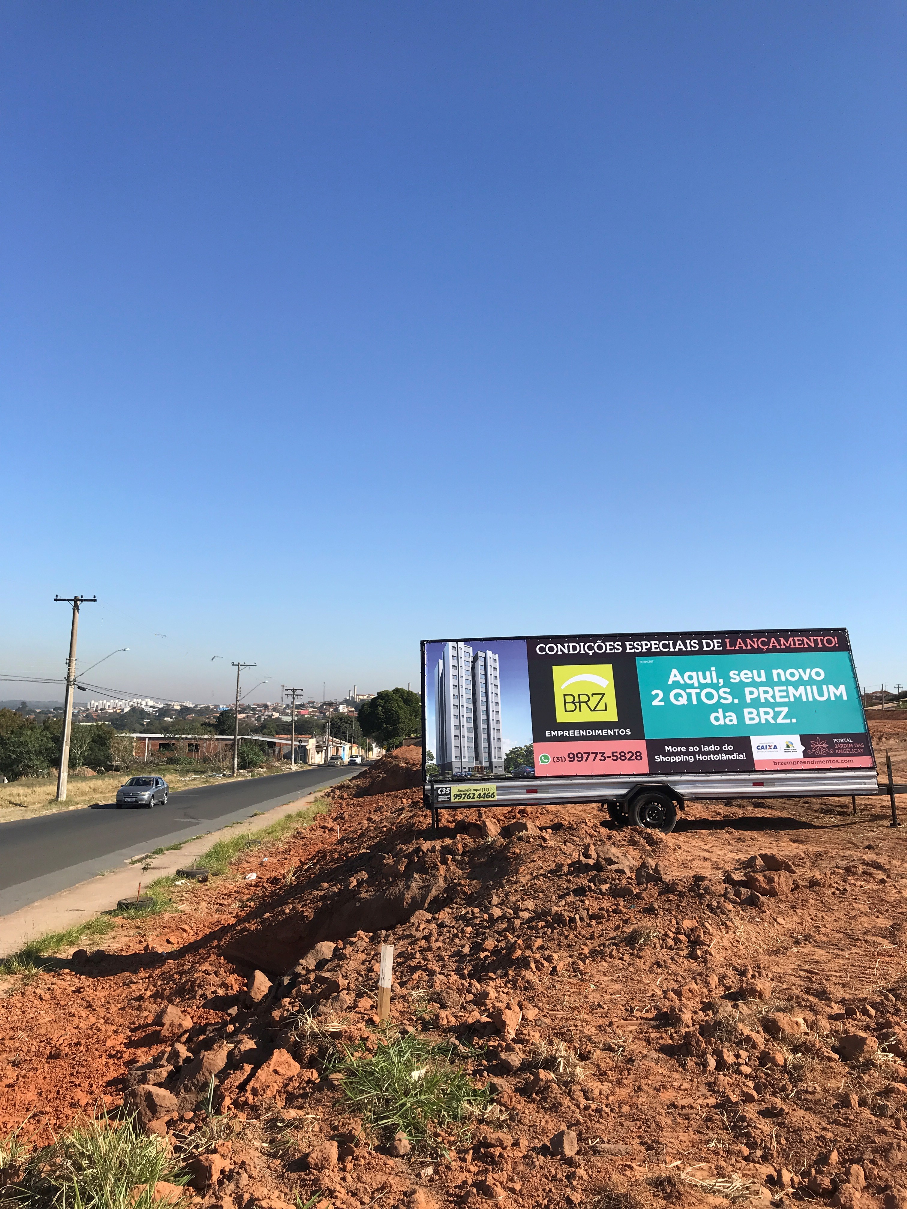 Cliente: RCCOM / BRZ Empreendimentos | Impressões de lonas e exibição em Outdoor Móvel Proplac em Hortolândia – SP